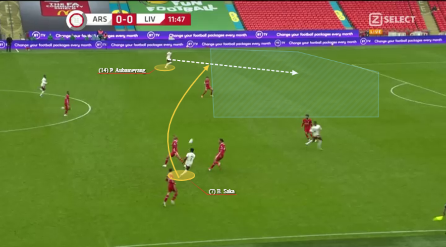 Nketiah's decoy run then bought time for Saka to switch the play expertly to Aubameyang on the opposite flank, where he was 1v1 with his marker.