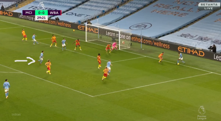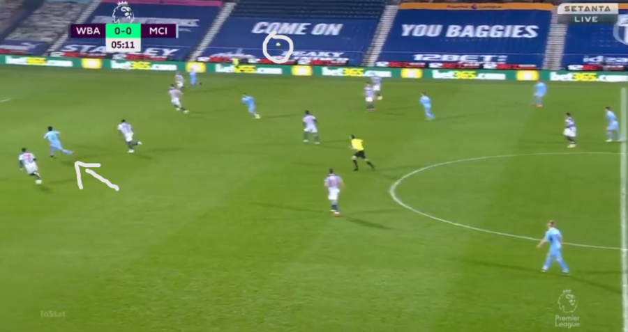 The image below is against the same opposition, although at the Hawthorns this time, and depicts Gundogan bursting beyond the Baggies' defence to bring down a perfectly weighted Joao Cancelo pass. This passage of play had the same outcome as the German took a touch, got the ball out from under his feet and buried it in the bottom corner.