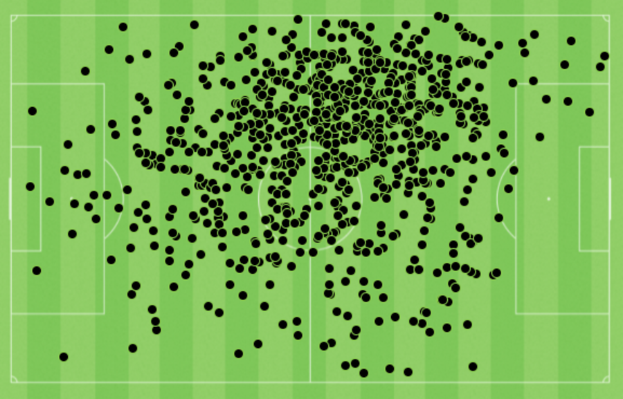 As the above graphic indicates, City's No.8 uses the ball in a remarkably David Silva-esque way - much more so than Foden, who plays fewer passes, has far fewer touches of the ball and prioritises using his exceptional and incisive dribbling skills to hurt the opposition rather than doing so by becoming the City conductor. This is further depicted in the chart below.