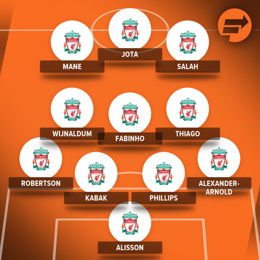 Jota should be partnered by Mohamed Salah and Sadio Mane in attack.