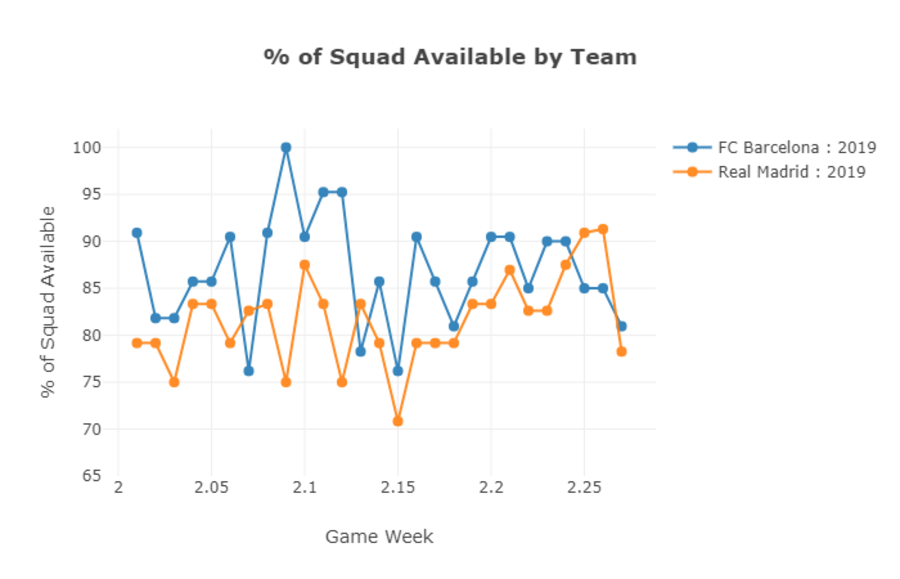 - Both Barcelona and Real Madrid have saw key players missing for extended spells of the season but the latter have been slightly worse off.