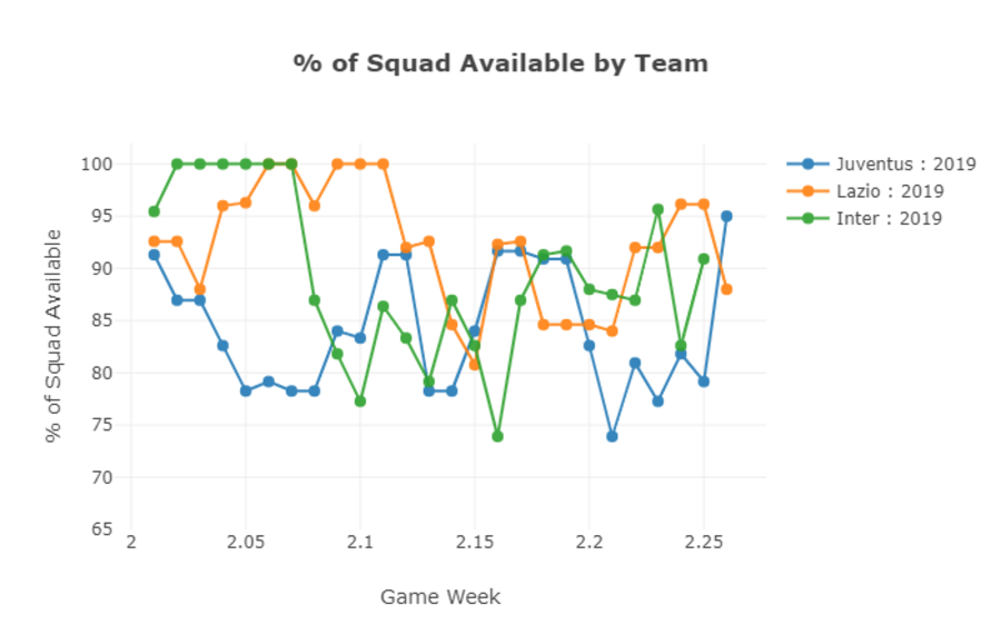 - Lazio meanwhile have the best consistency of the three in terms of keeping their squad healthy and this could be reflected in their season overperformance.