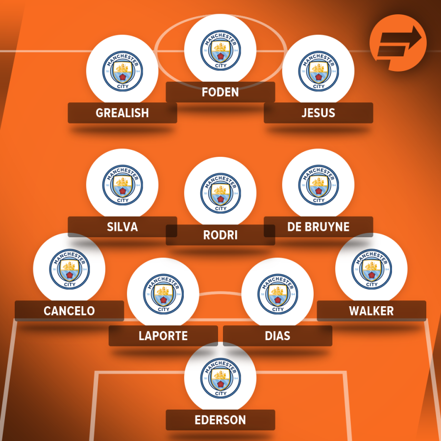 In attack, Grealish should start on the left with Foden through the middle and Jesus on the right.